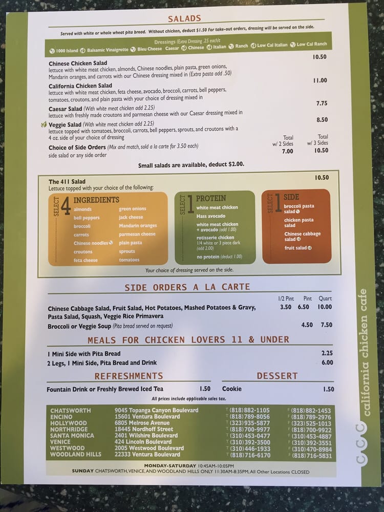 Welcome to Calif Chicken Cafe Santa Monica, where fresh, wholesome food meets a vibrant dining experience. Located on 2401 Wilshire Blvd, this gem offers a menu that emphasizes health without compromising flavor.